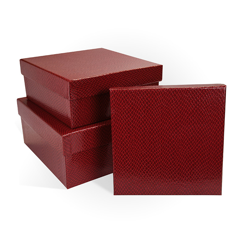Купите Набор подарочных коробок 3 в 1 бумага тисненая 190х190х90 бордовый в наличии по цене 390.00 руб с доставкой по с гарантией в интернет-магазине РутаУпак.