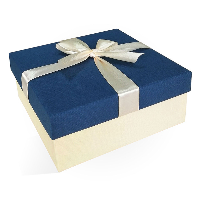 Купите Коробка подарочная с бантом тиснение РОГОЖКА 170x170x70 синий-слоновая кость в наличии по цене 90.00 руб с доставкой по с гарантией в интернет-магазине РутаУпак.