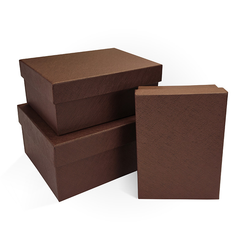 Купите Набор подарочных коробок 3 в 1 бумага тисненая 190х150х90 коричневый в наличии по цене 380.00 руб с доставкой по с гарантией в интернет-магазине РутаУпак.