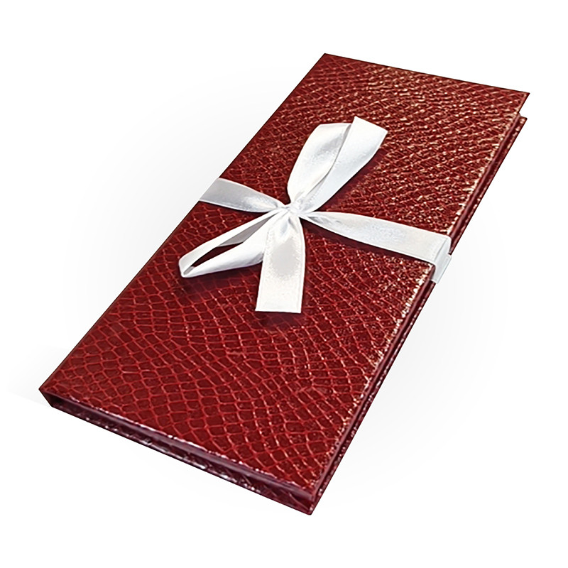 Подарочная коробка ДЛЯ ДЕНЕГ-тисненая бумага с бантом, 172х83х16 бордовый